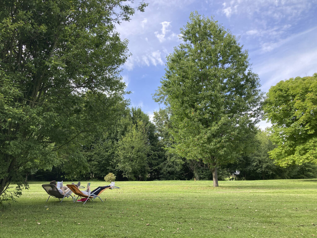 Le domaine s’ouvre sur un parc arboré de 5 000 m², longé par la rivière la L’huitrelle, offrant un environnement propice au repos, aux jeux en plein air et aux moments partagés en toute simplicité.