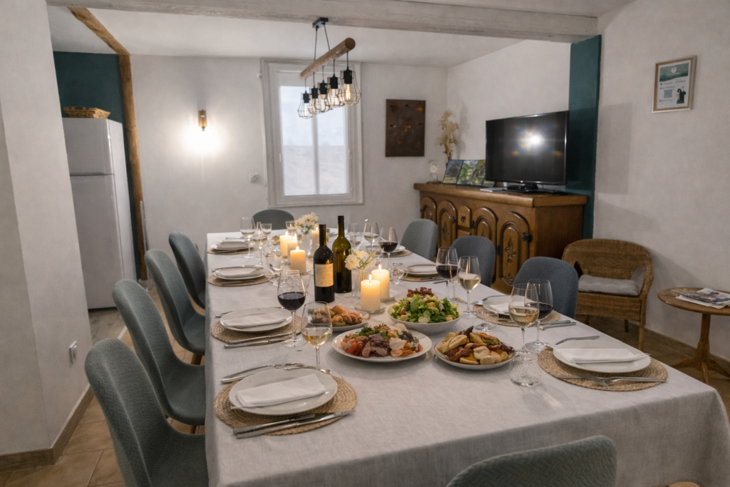 Confortable toute l’année, le gîte est équipé de la climatisation, permettant de profiter pleinement du séjour, y compris lors des périodes de fortes chaleurs. Les espaces de vie ont été pensés pour le partage : repas autour de la table, jeux, discussions et moments de détente, à l’intérieur comme à l’extérieur.