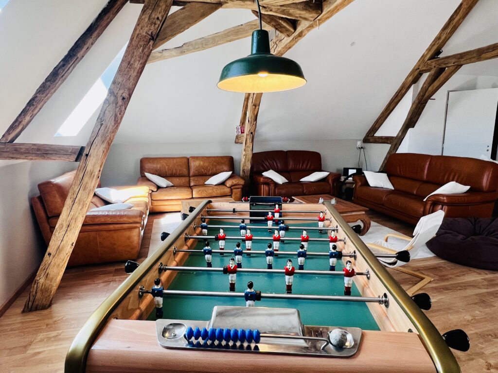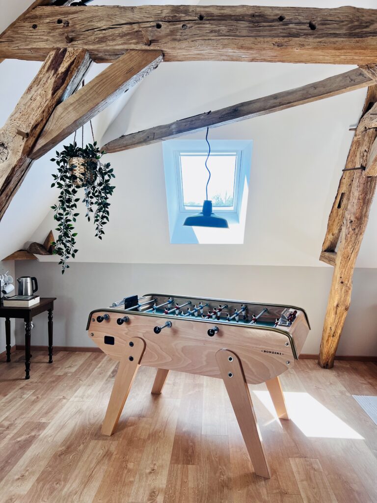 Le Gîte des Marronniers dispose d’une salle de jeux conviviale, pensée pour être partagée par petits et grands. On s’y retrouve autour d’un baby-foot, de jeux de société ou simplement pour passer un moment ensemble, quelle que soit la météo.